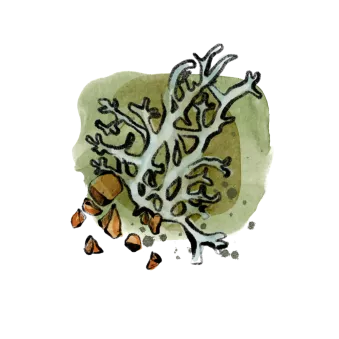 Eichenmoos prägt den Akkord von Patschuli, Amber und Zitrone.